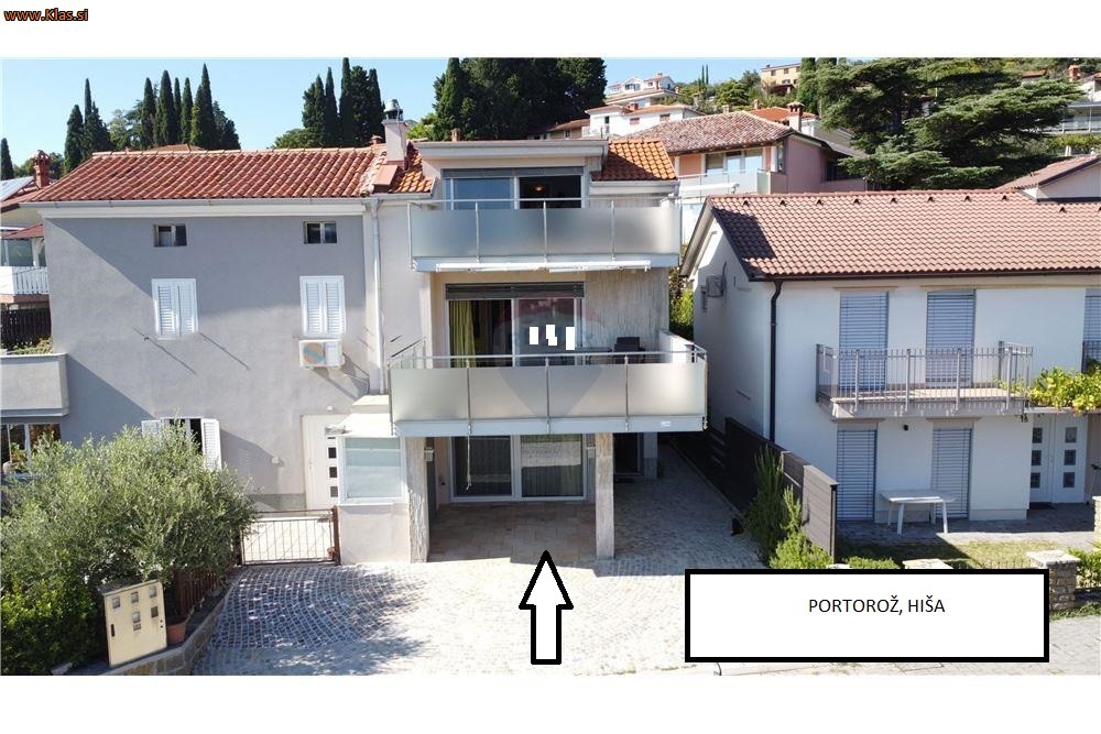 Vrhunsko vzdrževana stanovanska hiša pri centru Portoroža, le nekaj minut peš oddaljena od morja, zgrajena 2014, stgoji na 118m2 velikem zemjišču.