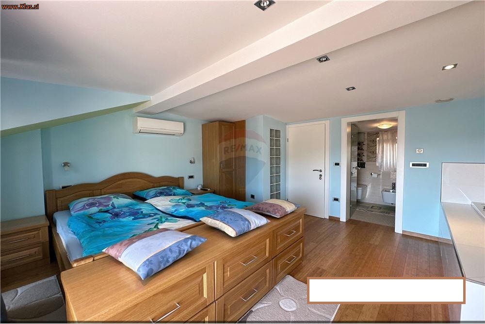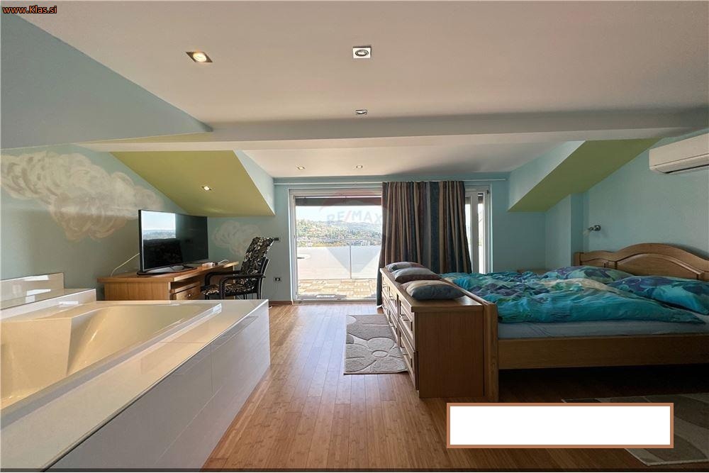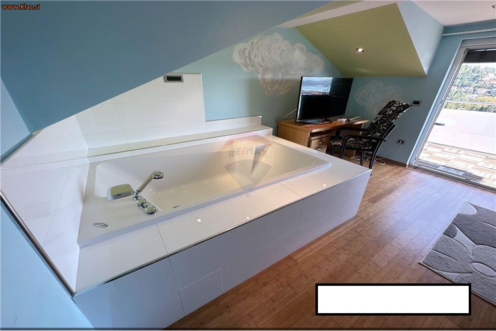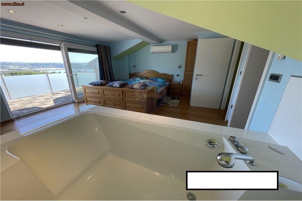 TRETJA ETAŽA: mansardni del: spalnica z jacuzzi-jem, manjša kopalnica za WC ter terasa z čudovitom pogledom proti morju.