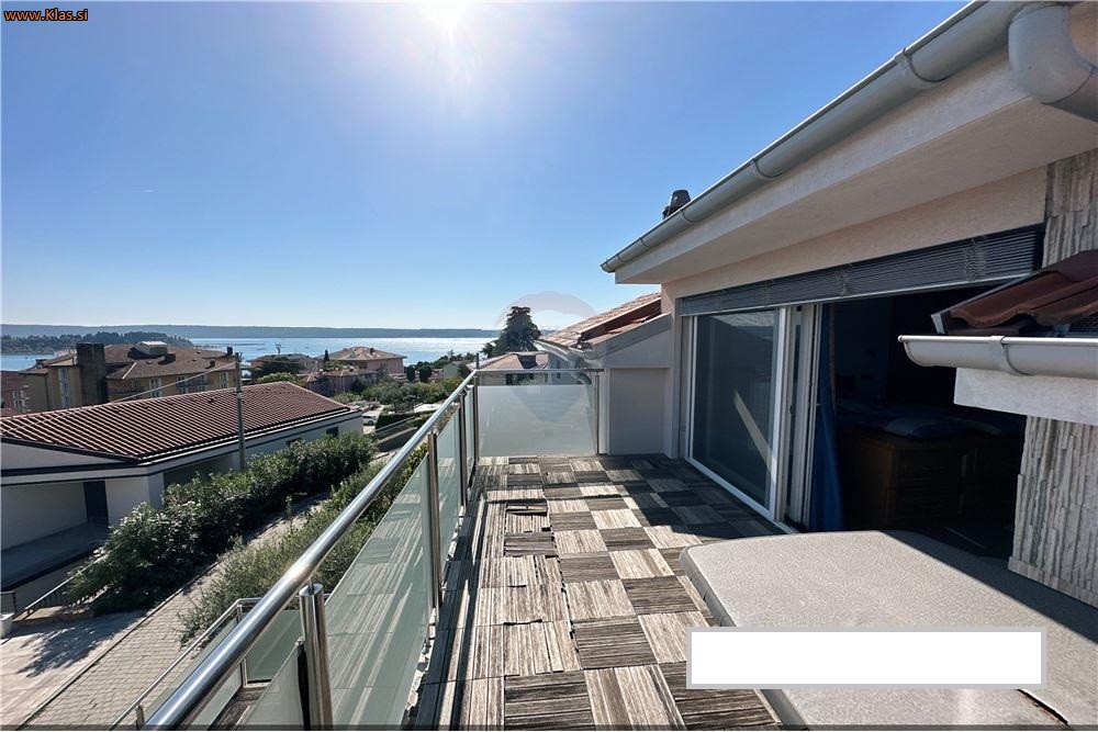 PRVA ETAŽA: predprostor, dve spalnice, kopalnica z WC-jem in izhod na večjo teraso ter božanski razgled na Portorož z obalo.